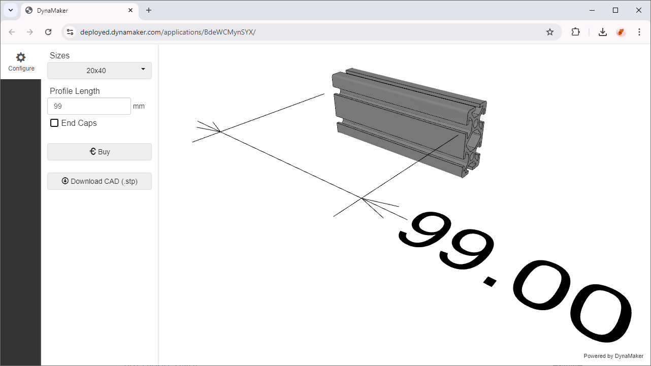 Använd fördefinierade standardprofiler i aluminium, till exempel 20×20 T-spår (DXF-filformat), för att växla mellan olika extruderade CAD-modeller till önskad storlek. Använd tillsammans med tillbehör som kan slås på eller av. Allt exporteras till samma 3D CAD-fil (.step AP242).